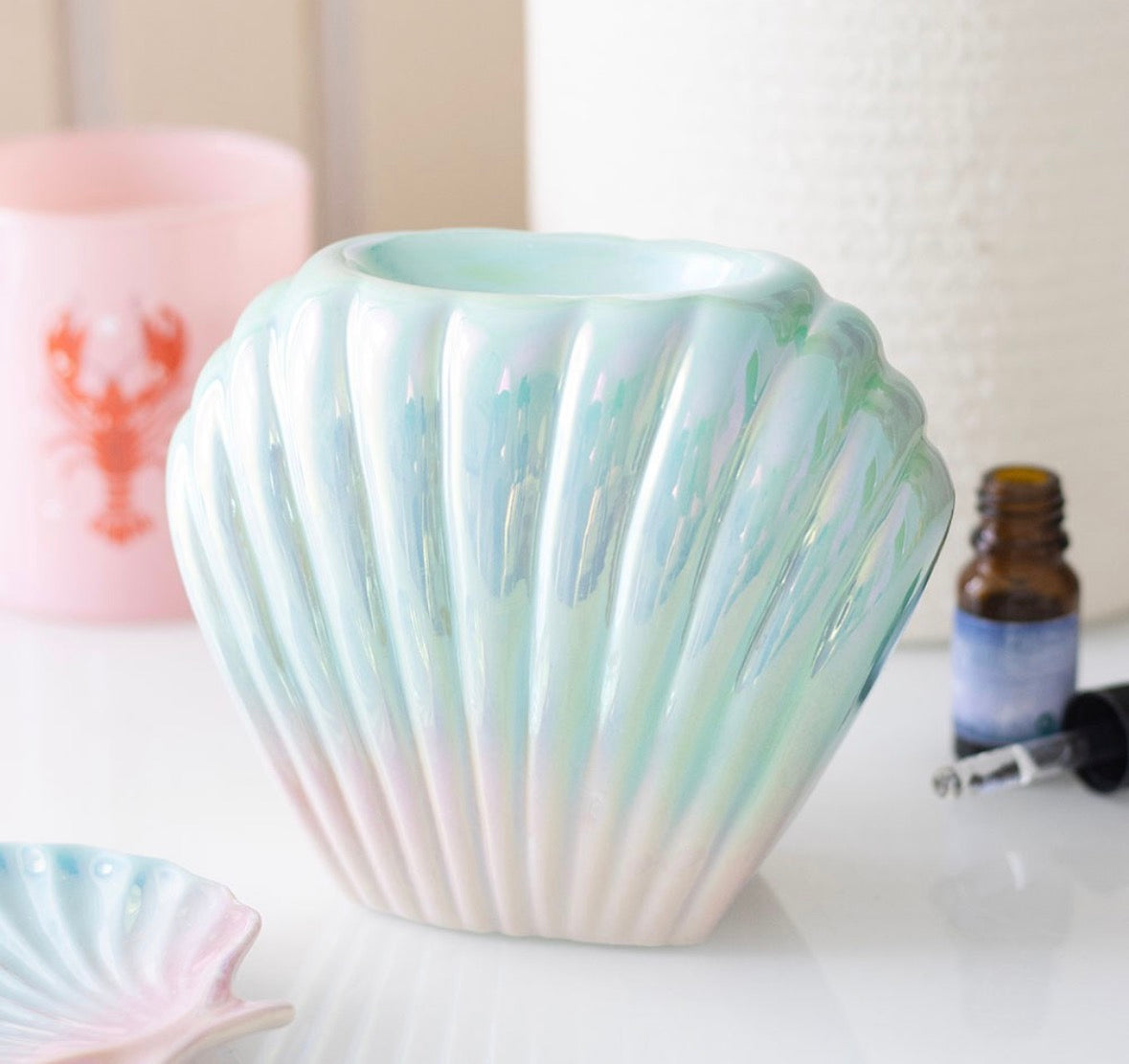 Add a splash of mermaid magic to your home with this shell-shaped ceramic oil burner, finished in a dreamy iridescent glaze. Simply add a few drops of fragrance oil diluted with water and let your favourite scent fill the space